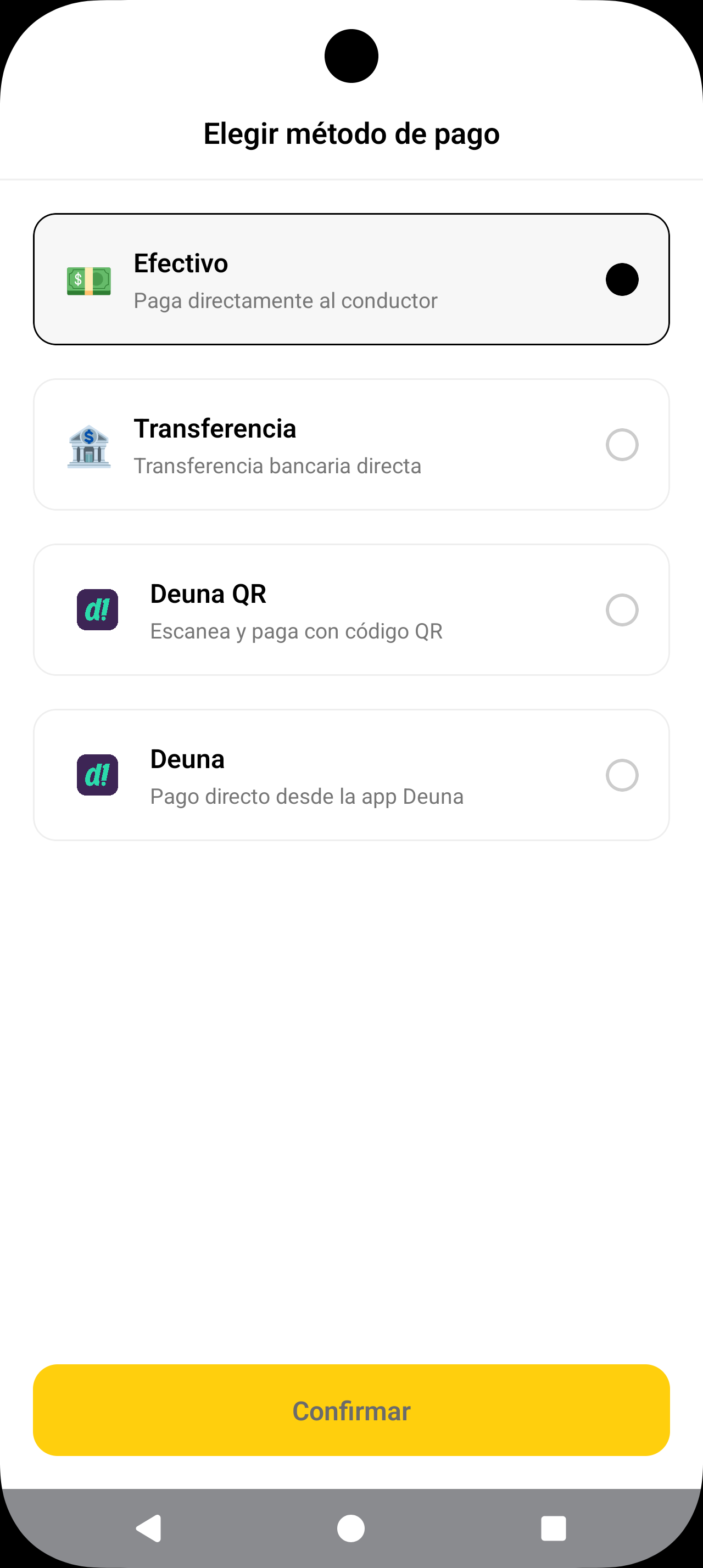 Indica tu destino y revisa conductores disponibles en tiempo real.