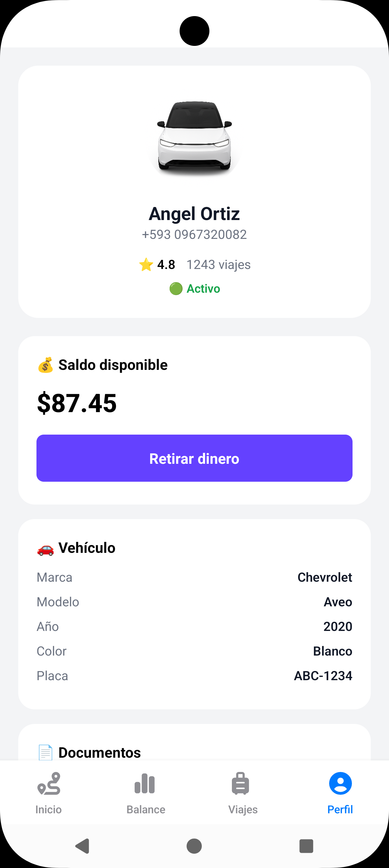 Indica tu destino y revisa conductores disponibles en tiempo real.